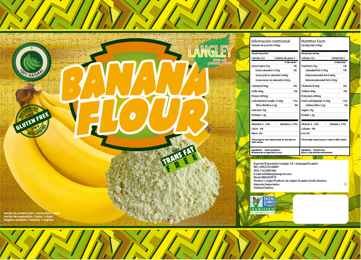 - La harina de banano no contiene edulcorantes, saborizantes, colorantes, decolorantes o ningún otro aditivo.