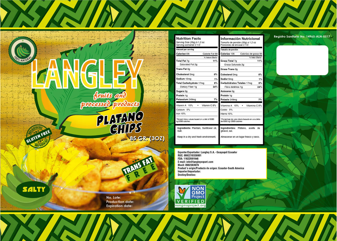 Chifles de plátano naturales de exportación. Hecho con plátano verde seleccionado pelado a mano. Producido bajo pedido. Tiempo de vida del producto de 1 año. Producto empacado al vacío en bolsas de polietileno de alta densidad de grado alimenticio. Elaborado y empacado bajo regulaciones sanitarias. Sabor natural (salado), crema de ajo, crema de cebolla y picante.