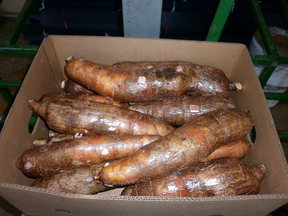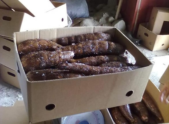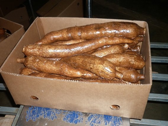 100% yuca de exportación. Pasa por un proceso de parafinado para asegurar su máxima duración y buena calidad. La carga pasa por un proceso que asegura las buenas condiciones y calidad del producto. La fruta es cosechada el mismo día en que se embarca. 100% de los cartones pasan por el proceso de calificación (no se realizan muestreos), se califica toda la carga.